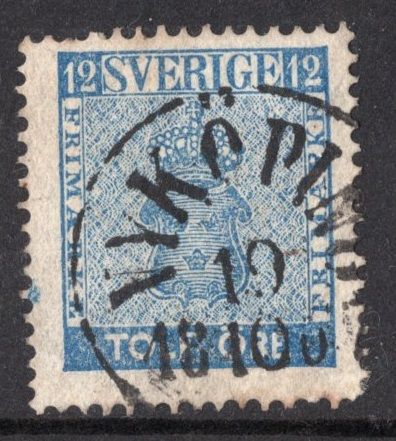 F9 Vapen 12 öre stmp Nyköping den 19.10.186? |