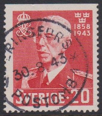 0344B Ulriksfors POSTOMB 1 1943-08-30 Gustaf V 85 år Z-län |