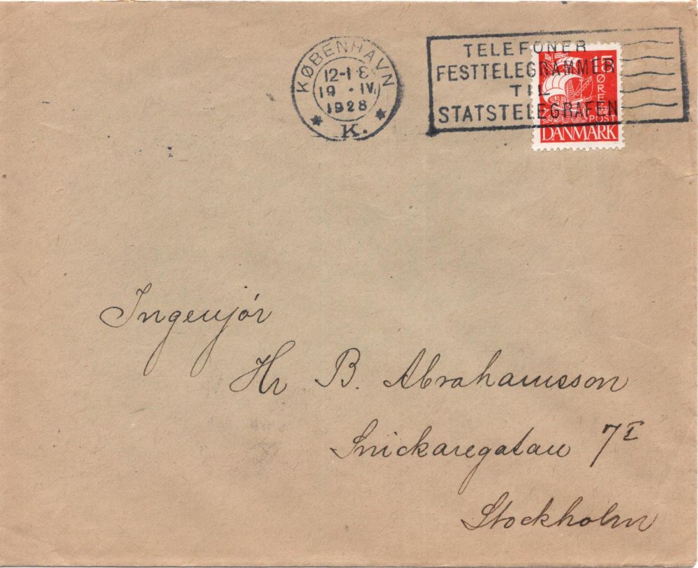 Danmark Köpenhamn 1928-04-19 Ank.stpl. Stockholm 20/4