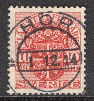 Tj 47 Hör. Lilla Tjänste. 10 öre röd med VM rättvända linjer. LYX. M-län |