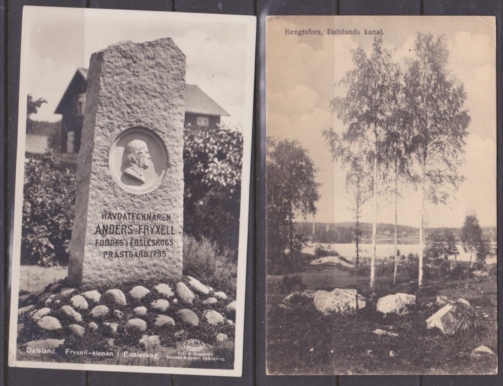 2 vykort, Fryxell-stenen stp 1946 ch Dalslandskanal ostämplat |