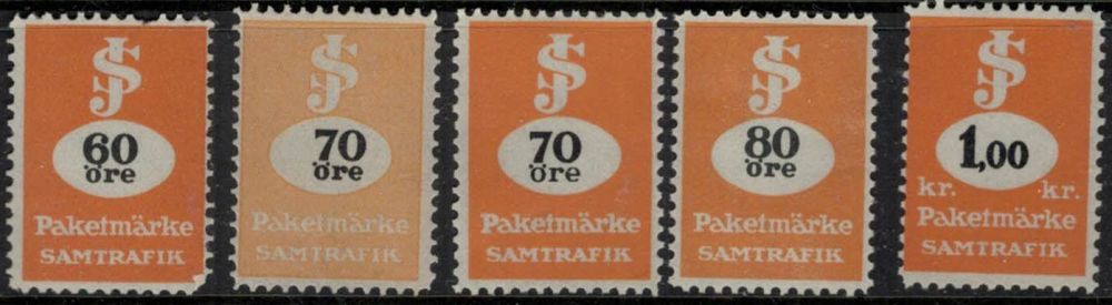 Fraktmärken SJ 5 olika postfriska |