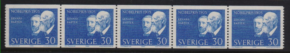 F570 Nobelpristagare 1905 30 öre, 5-strip ** |