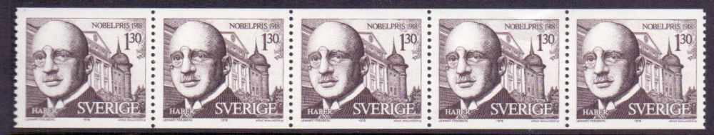 F1068 Nobelpristagare 1918 1.30 kr, 5-strip ** |