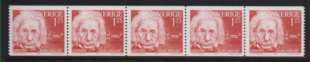 F1192 Nobelpristagare 1921 1.35 kr, 5-strip ** |