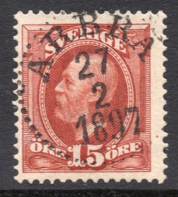 F55 Oscar 15 öre prakt stmp Arbrå i Bollnäs den 27.2.1897 |