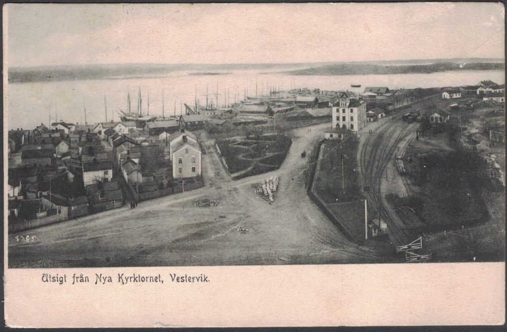 Postgånget vykort: Utsigt från Nya Kyrktornet, Vestervik. |