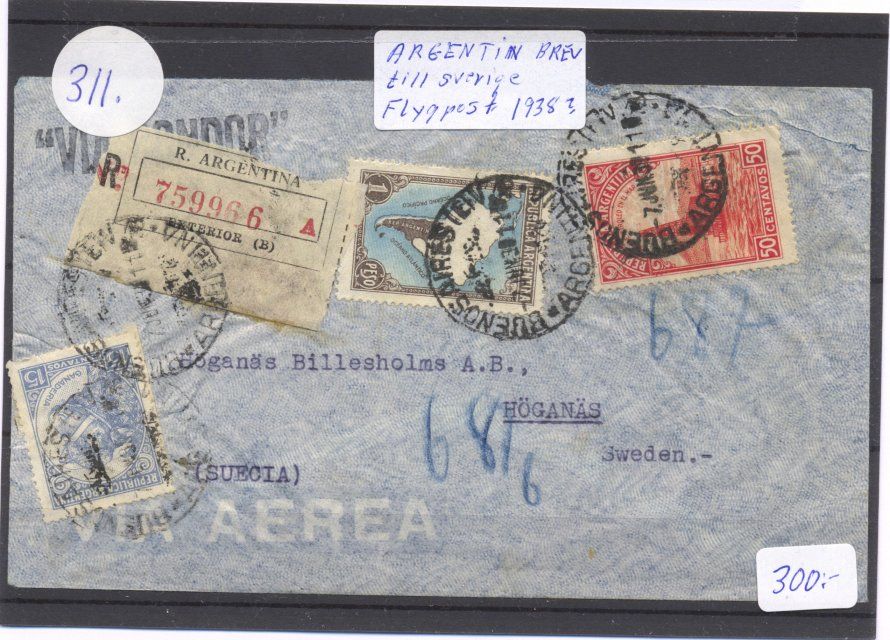 ARGENTINA Brev (2 st) från 1930-t adr. till Sverige Flygpost