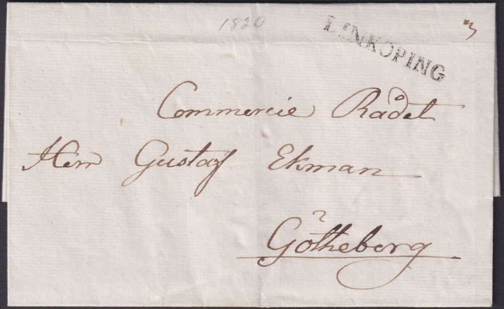 Förfilateli Rakstämpel Linköping typ 1 till Göteborg 1820 |