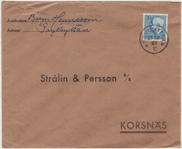 Grythyttan NSt 59cC på brev 27.12.57 SVÅR |