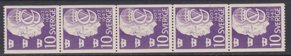 F376A Gustaf V:s Regeringsjub. 10 öre ** 5-strip |