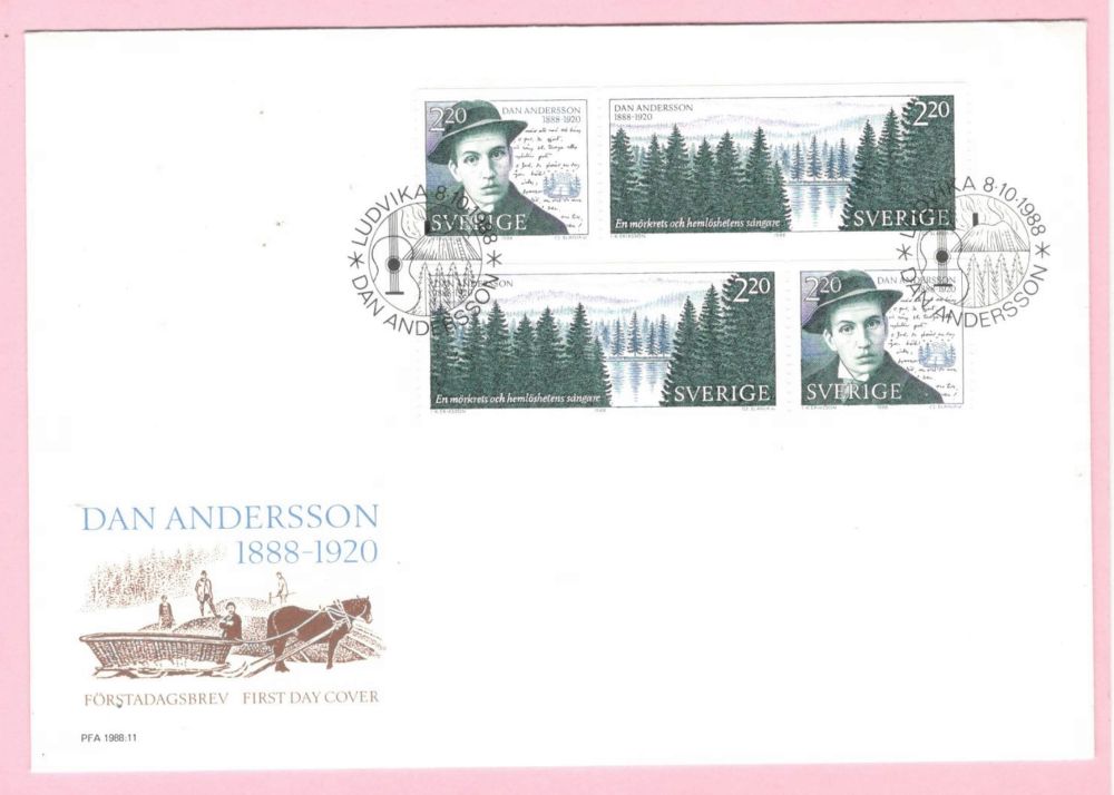 FDC 1988 Dan Andersson nr 1525 frimärken F1242 |