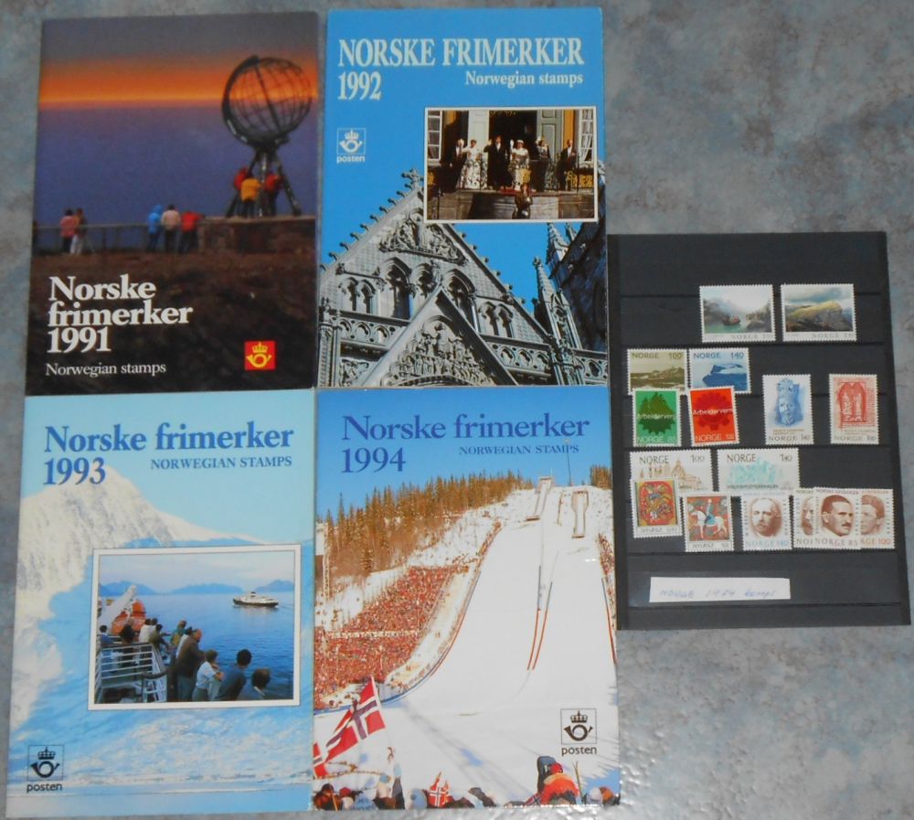 Norge: 4 st årssatser 1991-1994 + komplett sats postfriska 1974