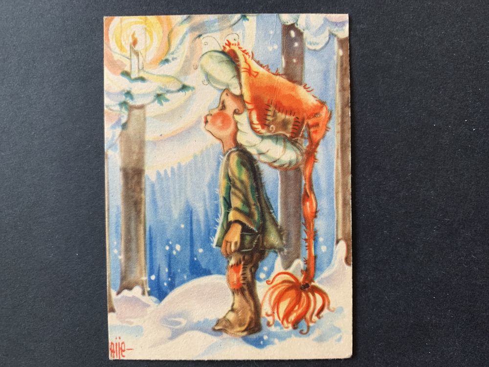 Äldre Julkort // småkort - signerat Jaije |