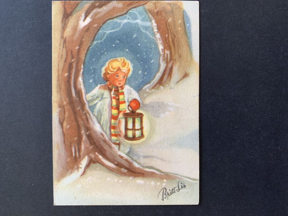 Äldre Julkort // småkort - signerat Britt-Lis |