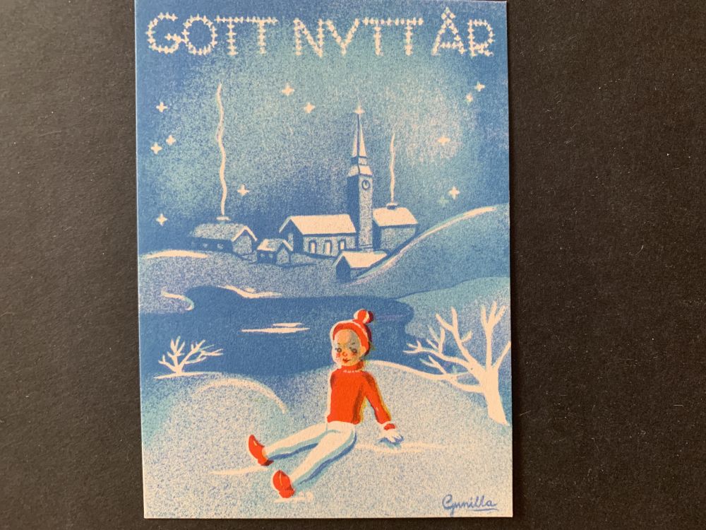 Äldre Julkort // småkort - signerat Gunilla |