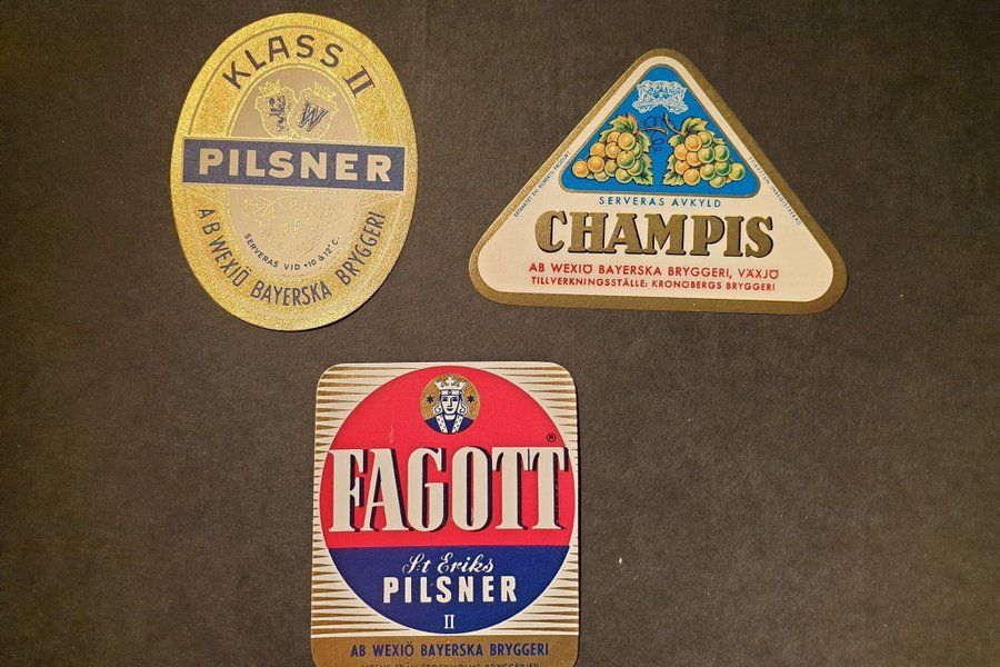 Växjö Wexiö Bayerska Bryggeri - Tre oanvända etiketter |