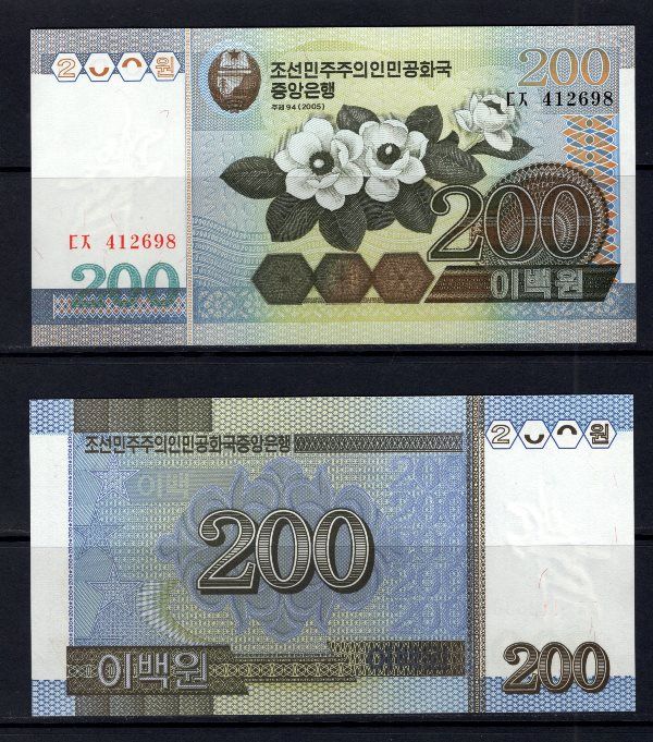 North Korea 200 Won 2005 UNC Uncirculated Free Shipping. |