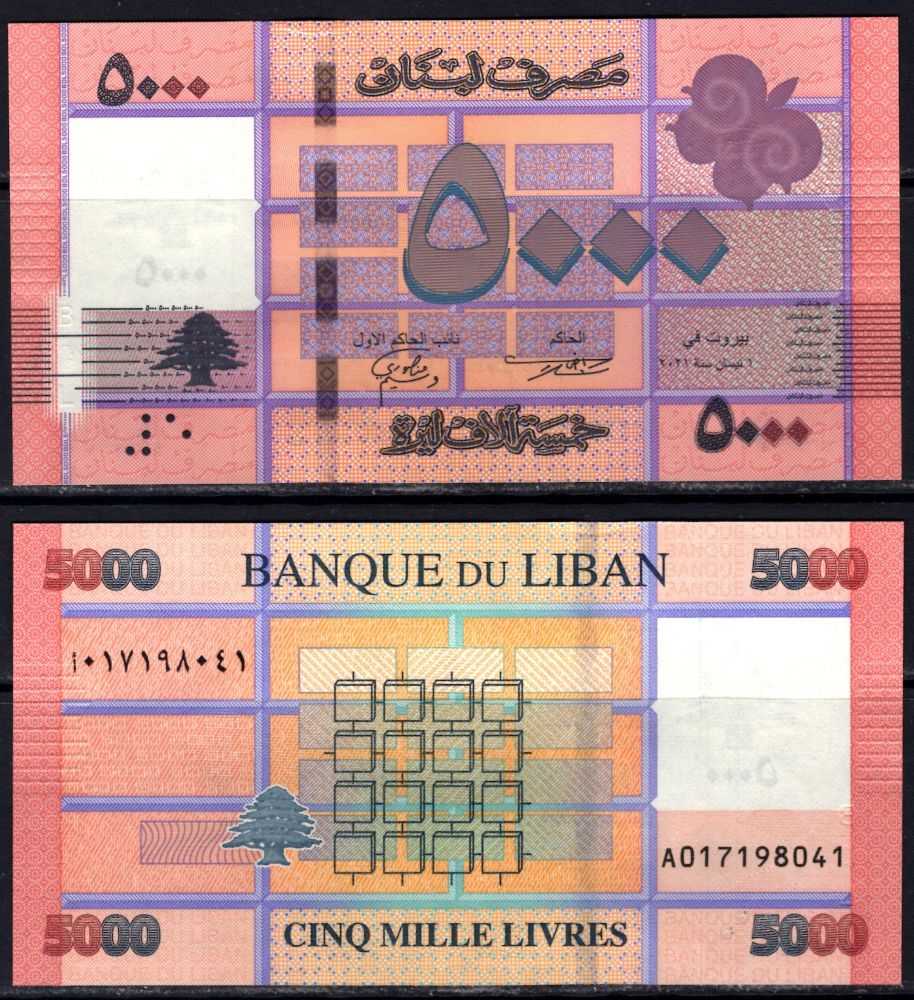 Libanon 5000 Livres UNC Uncirculated Free Shipping. |