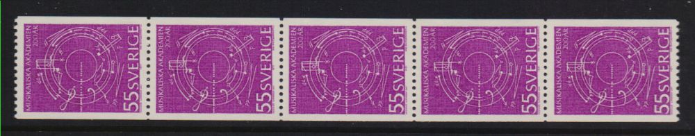 F731 Musikaliska akademien 55 öre, 5-strip ** |
