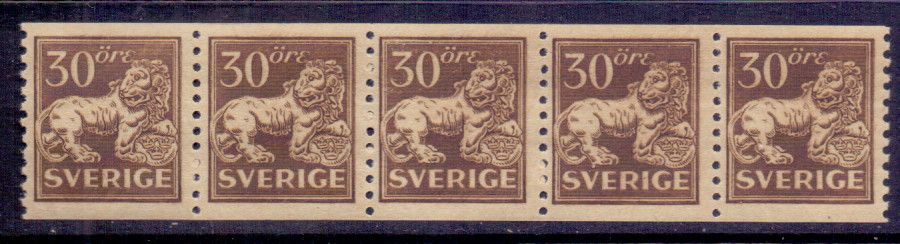 F148A Stående lejon, 30 öre, 5-strip ** |