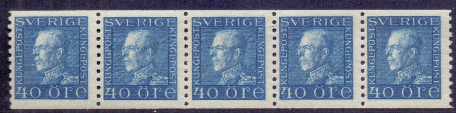 F188 Gustaf V profv, 40 öre, 5-strip ** |