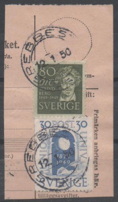 F387 80 öre olivgrön +F392 30 öre, blå.