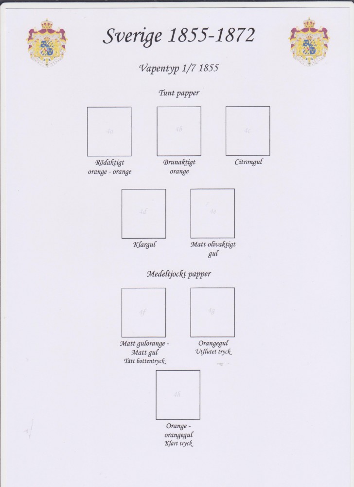 Sverige 1855-1920 (Facit 1-138 + tjänste och lösen). 100 st A4 blad med plats för alla nyanser.Stabila blad (200g/m2) för montering av din samling