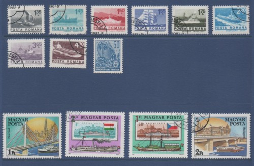 Insticksblad med motiv fartyg från Rumänien, Tyskland oh Ungern.Bra skick.