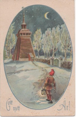 Postgånget Nyårskort av Tycho Ödberg.Tryckeri okänt.139 x 89 mm.