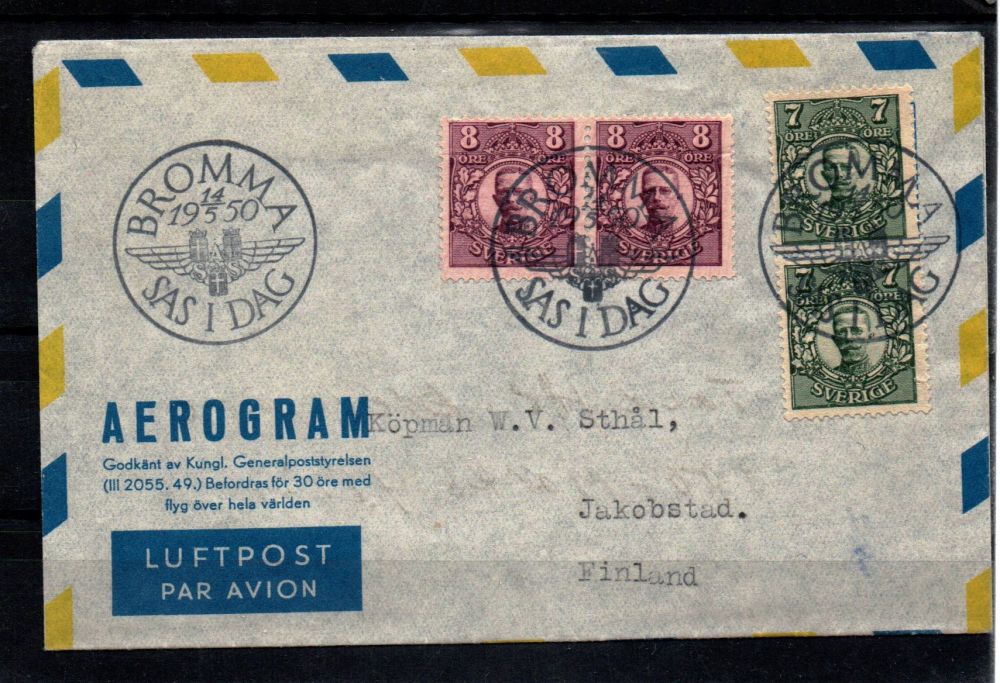 Aerogram avsänt 14.5.1950 frankerat med F80 och F81.Mycket bra skick.