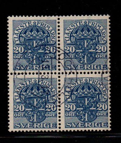 Stpl. 4-block TJ50 20 öre blå, 13.3.1917.Perfekt skick.