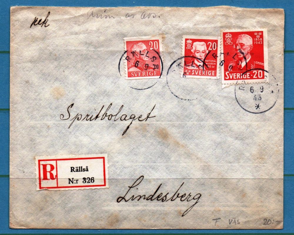 REK-brev med etikett från Rällså den 6.9.43.Bra kvalitet.
