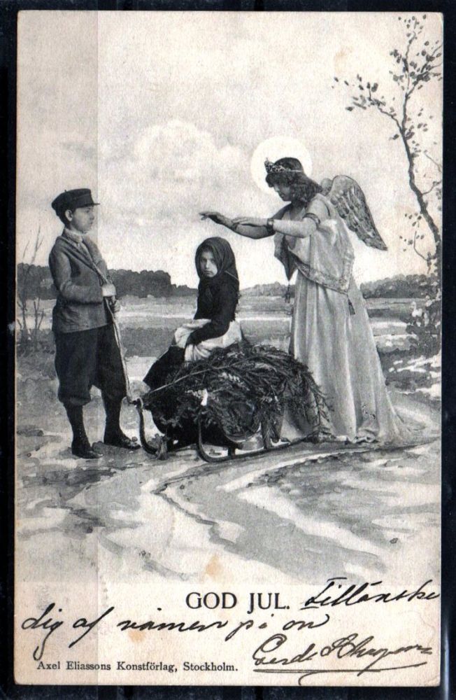 God Jul-kort avsänt Ballingbo 25.12.190x. Troligen 1908.Axel Eliassons Konstförlag, Stockholm. Import.