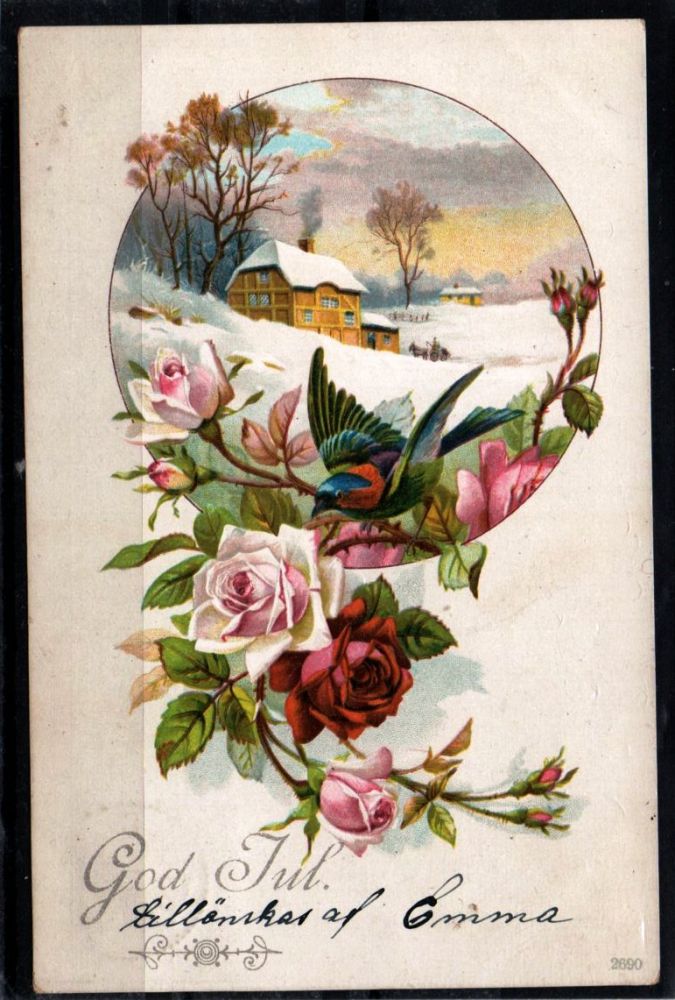 God Jul-kort avsänt Rödeby i Blekinge den xx.12.1909.Import. Åhlén & Holm Konstförlag, Insjön. Nr 2690.