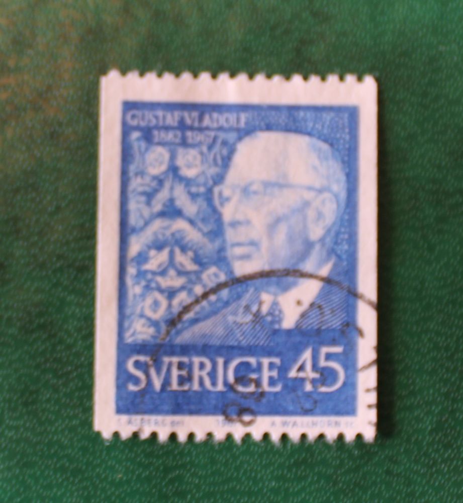 AFA 600, Kung Gustaf VI Adolf, 85 år. Mi:SE 594C, Sn:SE 765, Yt:SE 578, Sg:SE 544, AFA:SE 600, Fac:SE 616A.För att täcka kostnaderna för kuvert / förpackning tillkommer en avgift på 3 kr per försändelse.