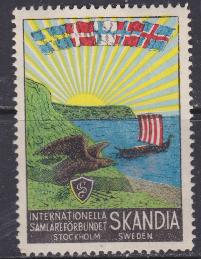 Brevmärke, "Internationella samlarförbundet SKANDIA Stockholm Sweden |