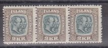 F89 2 kr Två kungar Island ** 3-strip Kv. 2850:-