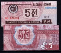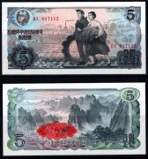 North Korea 5 Won 1988 UNC Uncirculated Free Shipping.