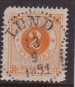 LUND 2 öre Ringtyp Posthorn Två runda hörn."Luckfyllare