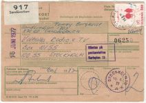 Skorped NSt 59c på paketavi 17.1.77 noterad R3 i katalog av Forsberg