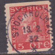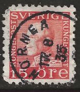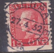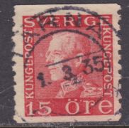 F177C 15 öre profil vänster, Hörneå 17.8.35 stämplad
