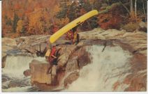 Canada, Sorel Qué, Hunter portage their canoe over the rock, of