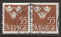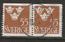 F285 55 öre Tre Kronor i par, Ödeshög 12.1.49
