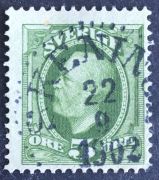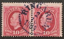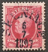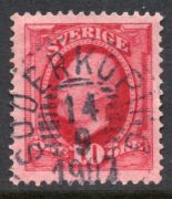 F54 Oscar 10 öre stmp Söderköping den 14.9.1907