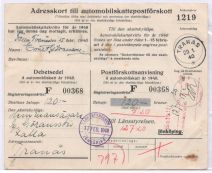 F/SM Adresskort för bilskatt TRANÅS 1940-01-29