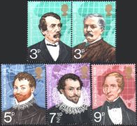GB 1973| Mi. 616-620 |Polarforskare |5 val 1 par+3 kompl serie